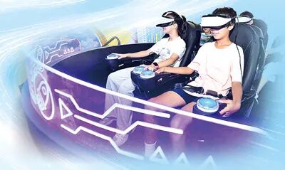 湖北省襄阳市保康县科技馆内,学生在体验“VR科幻飞碟”。