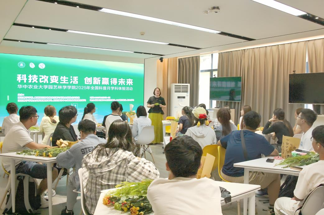 王媛媛老师指导同学们插花与讲解科普月的系列活动